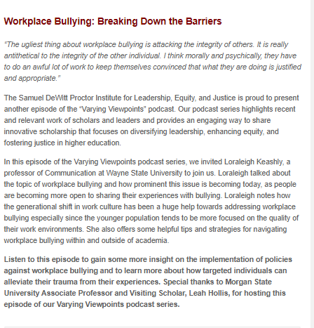 Our new episode of Varying Viewpoints is out! Check out our conversation surrounding “Breaking Down Barriers to Workplace Bullying”.